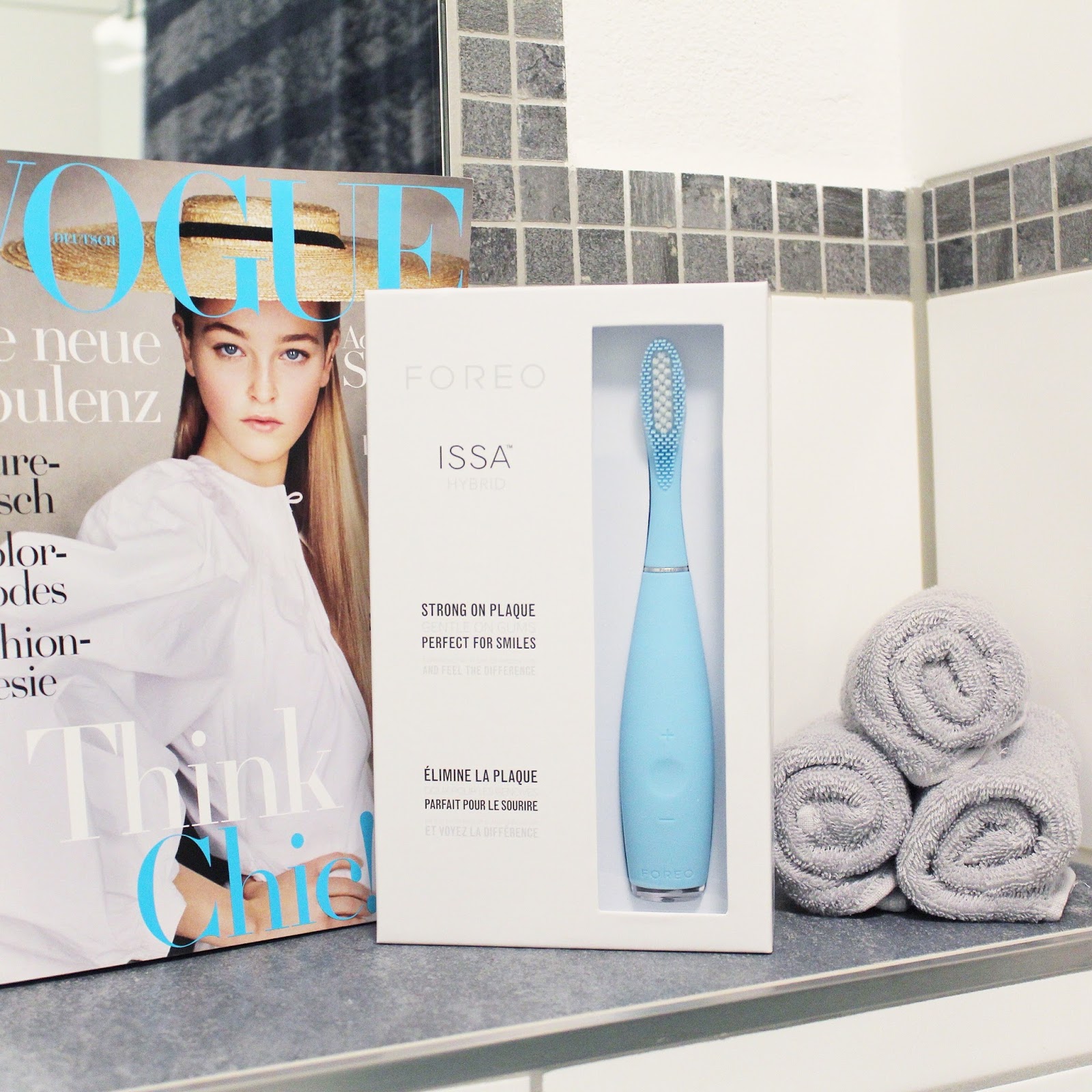 Generell muss ich sagen, bin ich jemand der sehr auf seine Zahnpflege achtet. Im Laufe der Jahre habe ich die verschiedensten Zahnbürsten ausprobiert. Deshalb verwende ich von der herkömmlichen Handzahnbürste über eine elektrische aufladbare Bürste auch eine Schallzahnbürste, Zahnseide und auch Dentalsticks. Eine ganz neue Art der Zahnreinigung und ein komplett neues Feeling ist für mich nun die ISSA Hybrid. Überzeugt hat mich definitiv die schonende Zahnreinigung (wer Probleme mit empfindlichen Zähnen und Zahnfleisch hat, dem würde ich zu dieser Bürste raten), der Timer der mir immer genau ansagt wie lange ich noch zu putzen habe und auch der hypoallergene, hygienische 3D Silikon-Bürstenkopf. Das Silikon ist schnelltrocknend und nicht porös. So können sich auch keine Bakterien mehr vermehren. Optisch gefällt mir vorallem das außergewöhnliche, witzige und moderne Design der FOREO ISSA. Nach dem Gebrauch steht sie stabil auf meiner Ablage im Bad. Sie ist ein echter Hingucker und auch die Handhabung ist sehr einfach. Besonders hervorzuheben ist die megalange Akkulaufzeit der FOREO ISSA HYBRID. Da kann meine herkömmliche Elektrozahnbürste überhaupt nicht mithalten, die ich mindestens ein bis zweimal wöchentlich aufladen muss. Wirklich positiv hervorzuheben, ist der zusätzliche Schutzdeckel auf der Rückseite des Gerätes. Bei meiner Gesichtsreinigungsbürtse FOREO Luna ist der Ladeeingang leider nicht durch einen Deckel geschützt. Obwohl versprochen wird, dass dieser wasserfest ist, habe ich immer ein wenig Bedenken, meine FOREO Luna lange unter fließendem Wasser zu verwenden. Auch sehr positiv anzumerken ist das seltene Wechseln des Zahnbürstenkopfes. Bei der FOREO ISSA HYBRID muss ich den Bürstenkopf maximal zweimal jährlich wechseln, während ich bei einer herkömmlichen Elektro-Zahnbürste diese deutlich öfters wechseln muss. Der Preis ist zwar immens, allerdings hat man mit der Issa ein werthaltiges Produkt, an dem man seine Freude hat. Als weltweit erste elektrische Zahnbürste vollständig aus Silikon, ist die ISSA von Foreo sicher eine super Zahnpflegemöglichkeit zur Reinigung, Massage und Aufhellung der Zähne für Zuhause.