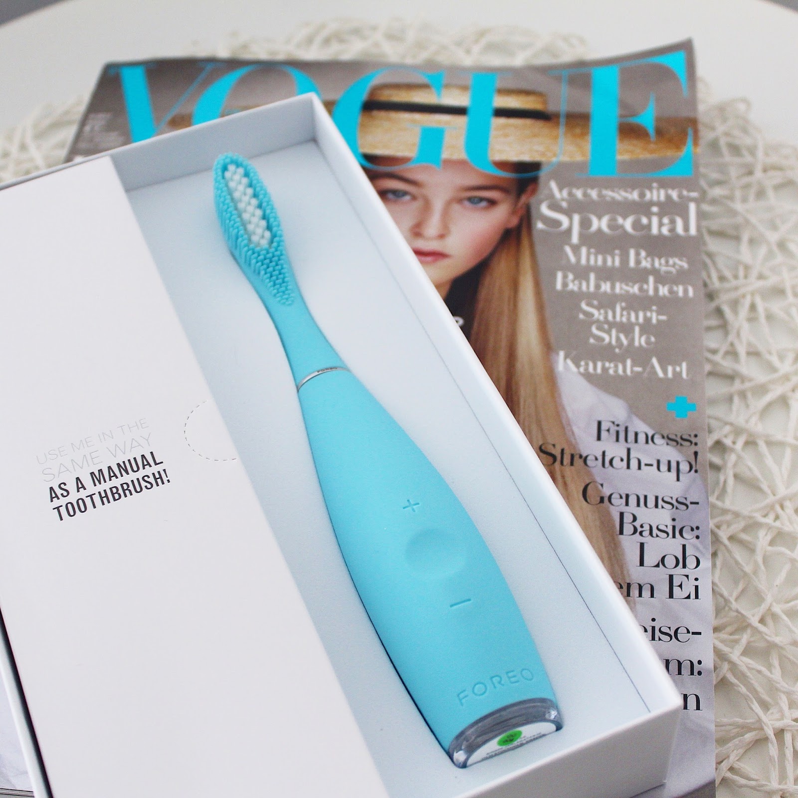 lässt sich die FOREO ISSA einfach im eigenen, mitgelieferten Etui leichtgewichtig und einfach transportieren-der perfekte Urlaubsbegleiter also. Das Ladekabel (USB ohne Netzstecker) könnt Ihr dabei zuhause lassen – außer Ihr plant ein halbes Jahr im Ausland…Da sie bereits geladen war, konnte ich sie auch sofort testen.