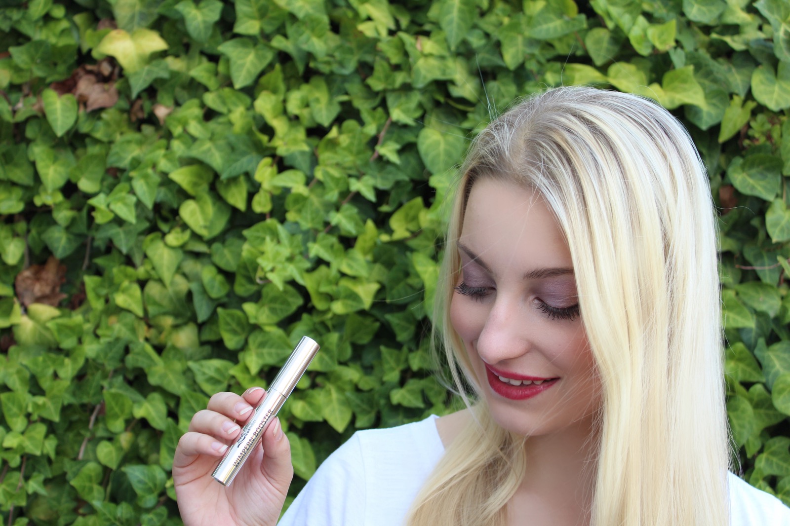 bringen soll. Es soll die Haarwurzeln stimulieren und das Wimpernwachstum fördern. Dadurch werden die Wimpern gekräftigt, verlängert und verdichtet und der Haarausfallprozess verlangsamt. Ich habe den Booster auch auf den Augenbrauen verwendet und siehe da er sorgt auch dort für eine dichtere und gleichmäßigere Braue, die in Kombination mit meinen Wimpern den Blick so verführerisch wie noch nie aussehen lässt ;-). Kaufen könnt ihr diesen Booster exklusiv nur in der Apotheke.